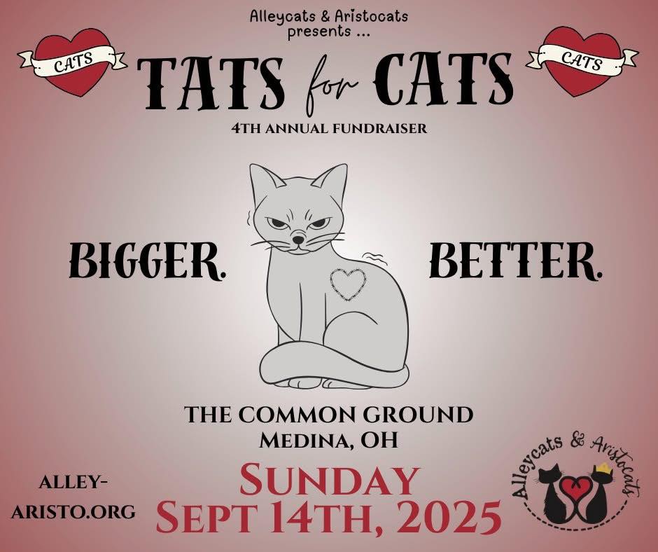 ✨ We’re officially less than a month away from our 4th Annual Tats for Cats Fundraiser!